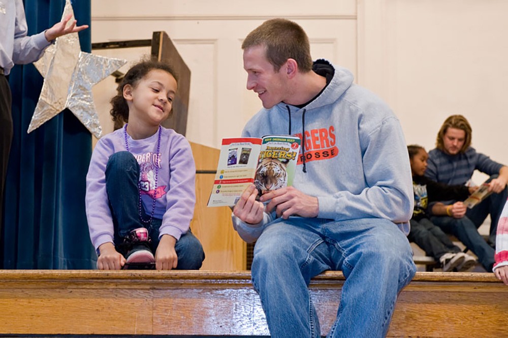 Led by RIT, more than 400 student athletes and library staff from seven local colleges visited seven Rochester city elementary schools Nov. 5 to participate in the Giant Read. The event was funded by a grant RIT received from the John F. Wegman Fund through the Rochester Area Community Foundation. MCC, Nazareth, Roberts Wesleyan, St. John Fisher, SUNY Brockport and University of Rochester joined RIT for the event. The student athletes read to first graders and then joined in activities in the schoolsâ gymnasiums. -