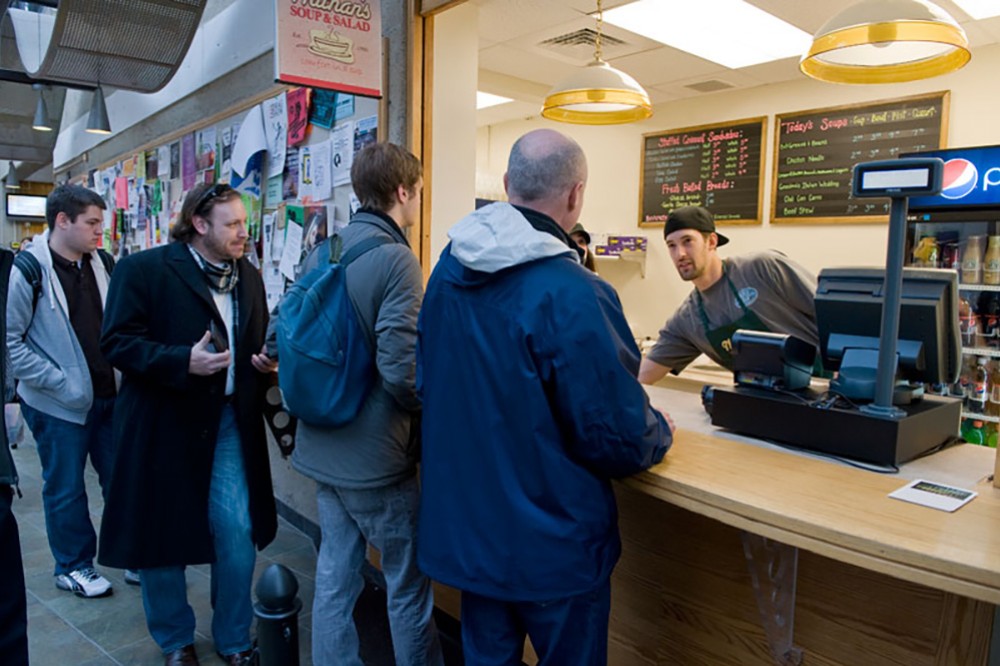 A line formed for the opening of Nathanâs Soup and Salad in the Student Alumni Union lobby on Nov. 9. Nathanâs, a favorite restaurant on Park Avenue, now has an additional location in the former candy counter space. Nathanâs offerings include healthy homemade soups, sandwiches and breads. -