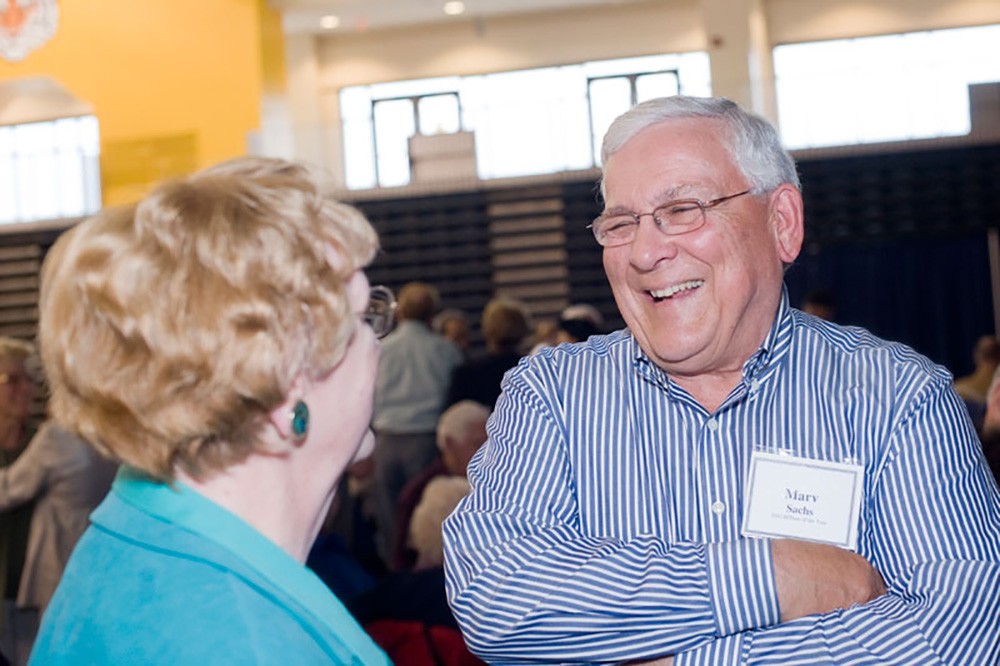 The 12th annual RITirees Picnic took place June 9 in the Gordon Field House and Activities Center. Two retirees received the RITirees Award: Marvin Sachs and Richard Sterling, a former staff member. Here, Sachs, a former faculty member in the NTID Department of Science and Mathematics, chats with another attendee.