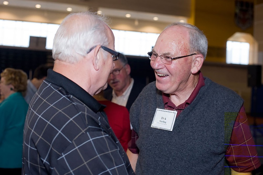 The 12th Annual RITirees Picnic took place in the Gordon Field House and Activities Center on June 9. Two retirees received the RITirees Award, a member of the faculty, Marvin Sachs, and a staff member, Richard Sterling. Here, Sterling, former director of Campus Safety, chats with another attendee.