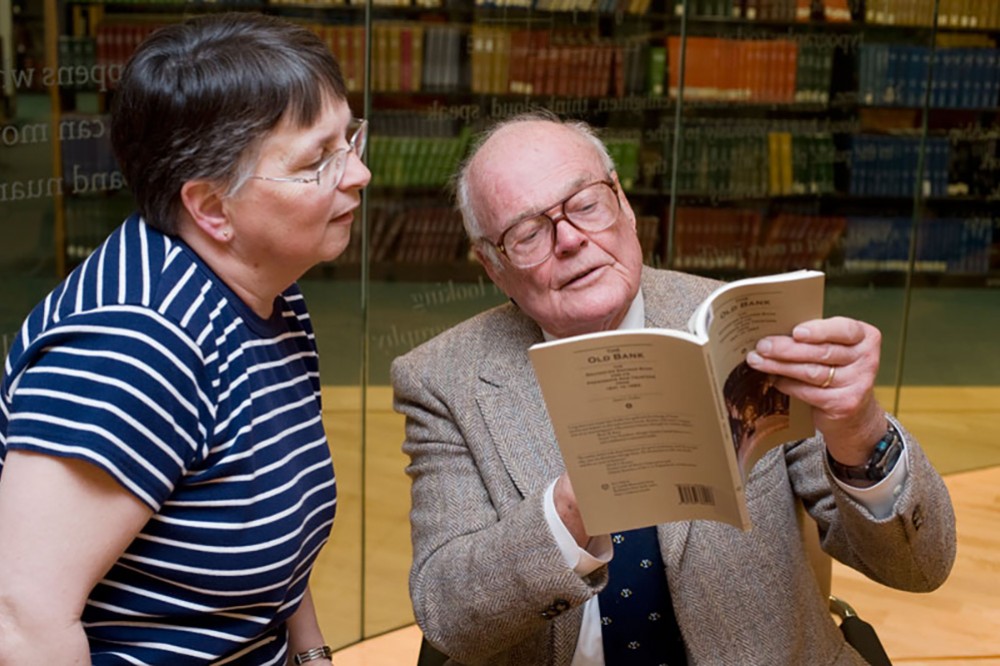 James Duffus, author of the latest book published by RIT Cary Graphic Arts Press, gave a presentation and signed books on March 25. The Old Bank: The Rochester Savings Bank and its Presidents and Trustees from 1831 to 1983 chronicles the life span of 152 years of the bank. Here, Liberal Arts librarian Linda Coppola had her copy signed by the author. -