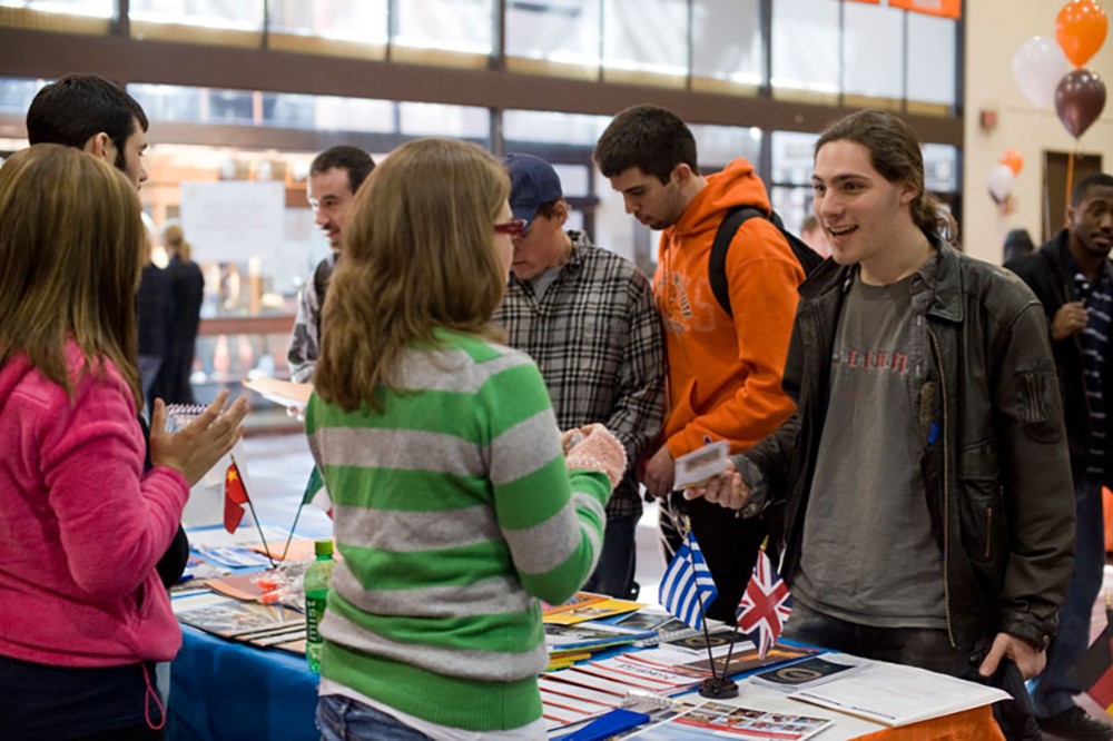 The Liberal Arts Minor and Concentration Fair on Jan. 22 featured faculty representatives from the more than 40 minors and concentrations offered through the College of Liberal Arts. Here, students gathered information and handouts for study abroad.