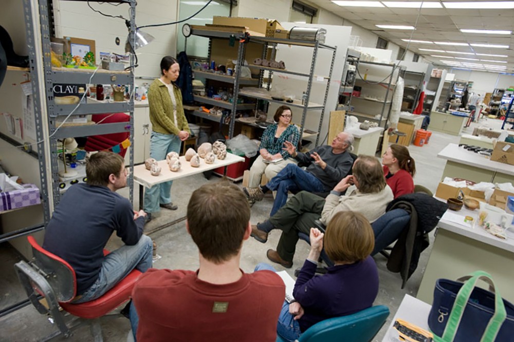 Graduate students in the ceramics program receive feedback from professors in RITâs School for American Crafts during a critique session. -