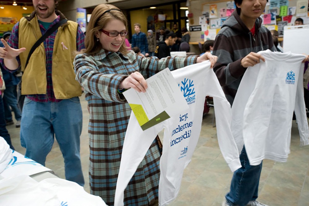 RITâs Center for Campus Life and Division of Student Affairs are hosting the first FreezeFest celebration on campus, Feb. 5-7. Students handed out T-shirts in the SAU to kick off the weekend festivities. -