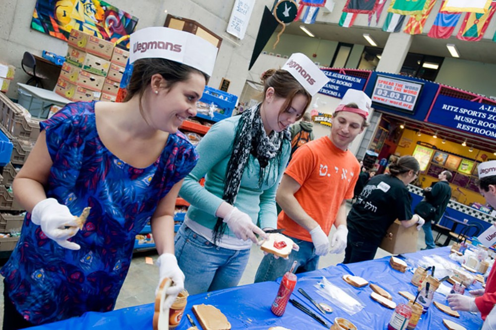 Volunteers from the Center for Religious Life coordinated their annual PB Jam Feb. 8. Nearly 2,000 peanut butter and jelly sandwiches were made during the 4-hour event. Following the preparation, the sandwiches were delivered to the Salvation Army, Open Door Mission, AIDS Rochester and the House of Mercy for distribution to Rochesterâs needy. -