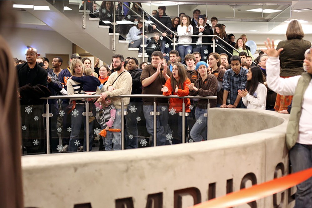 RITâs Campus Center was formally dedicated Feb. 6 as part of the campus Freeze Fest extravaganza. The 30,000-plus-square-foot Campus Center located across from Clark Gymnasium, with alternate access from inside the Student Alumni Union, is characterized by curved windows and comfortable seating areas. Administrators hope the space will become a central location where students can meet and socialize. -