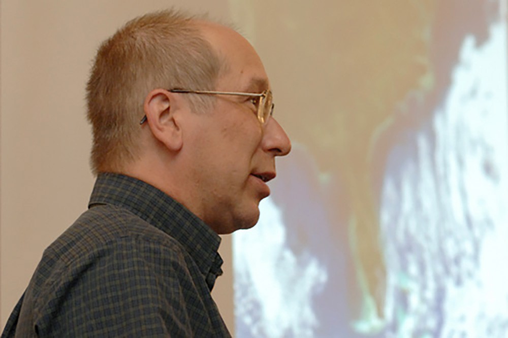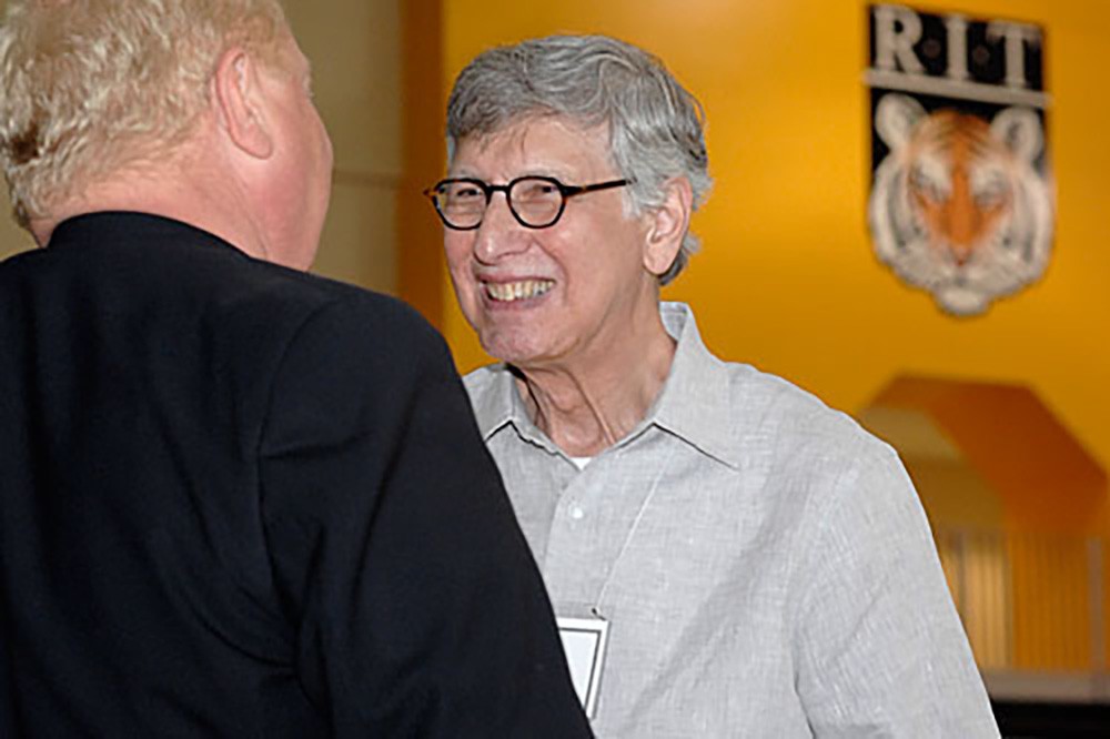 The RIT Imaging Bash brought together faculty and staff members to share their imaging-related research on June 2. Here, John Kerekes, Center for Imaging Science, explained his work. -