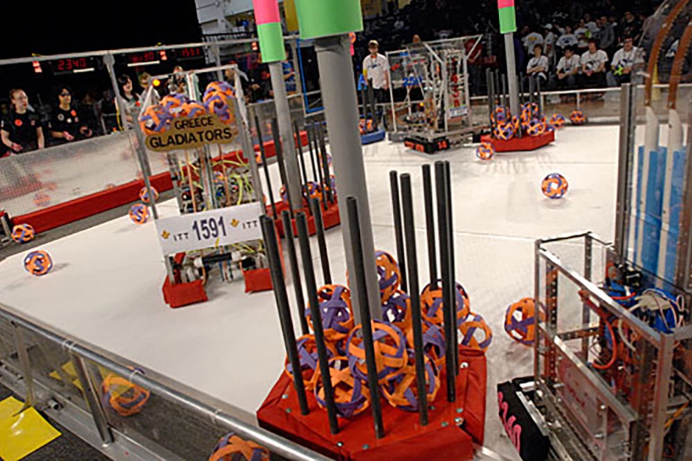 Hundreds of high school students, their mentors, supportersâand robotsâdescended on the Gordon Field House March 7-8 for the Finger Lakes Regional FIRST Robotics Competition. For the fifth year, RIT hosted the national competition that saw 50 teams from the Northeast compete in this yearâs game, LUNACY. FIRST (For Inspiration and Recognition of Science and Technology) is an international sporting and technology competition, with events taking place in all 50 states and around the world. Winners from regional competitions meet in Atlanta for the championship.