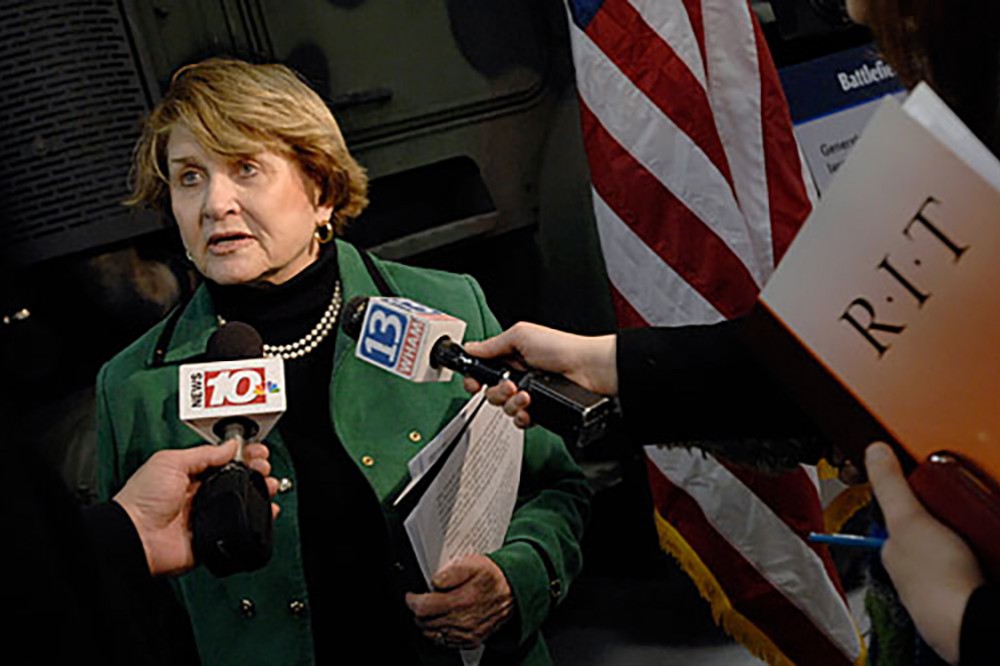 Congresswoman Louise Slaughter was on campus March 13 to announce new funding for a partnership between RIT and Delphi Corp. to commercialize solid-oxide fuel cells for military and commercial applications. -