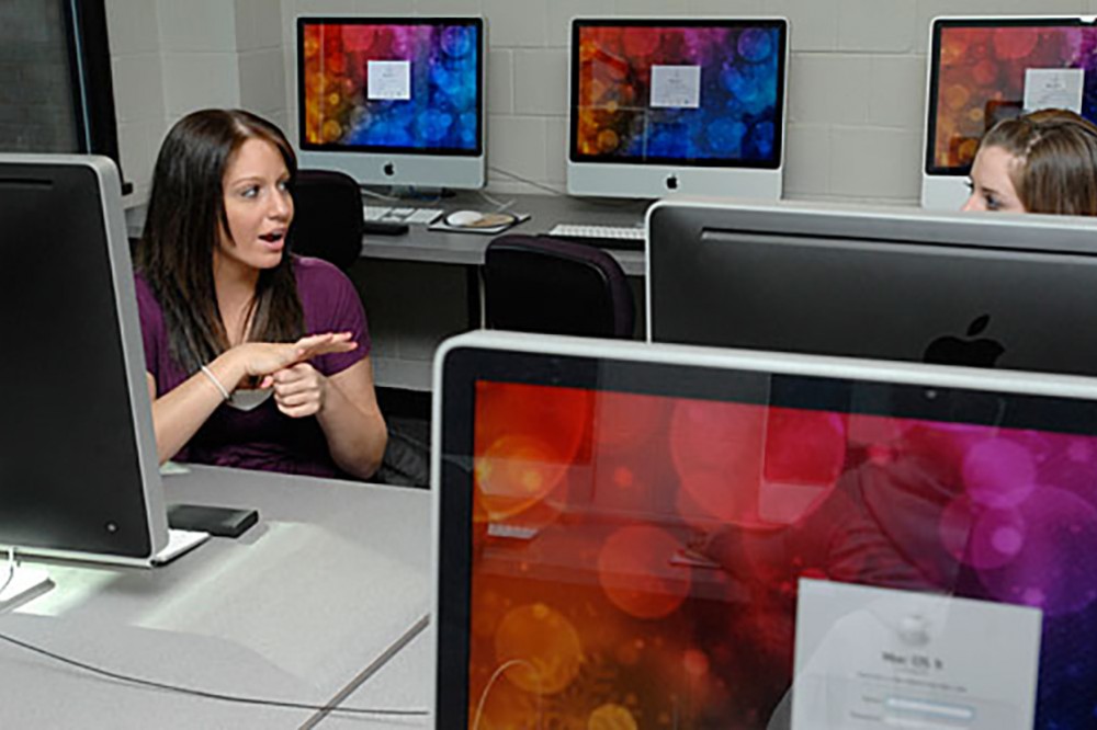 Carlina Fucarino, a second-year psychology major, utilizes the newly upgraded Mac Lab in the college of Liberal Arts building. The lab is being utilized for research and coursework in a host of fields including journalism, advertising and public relations and graphic design. The upgrade was made possible by funds provided by four Rochester-area advertising firms. -