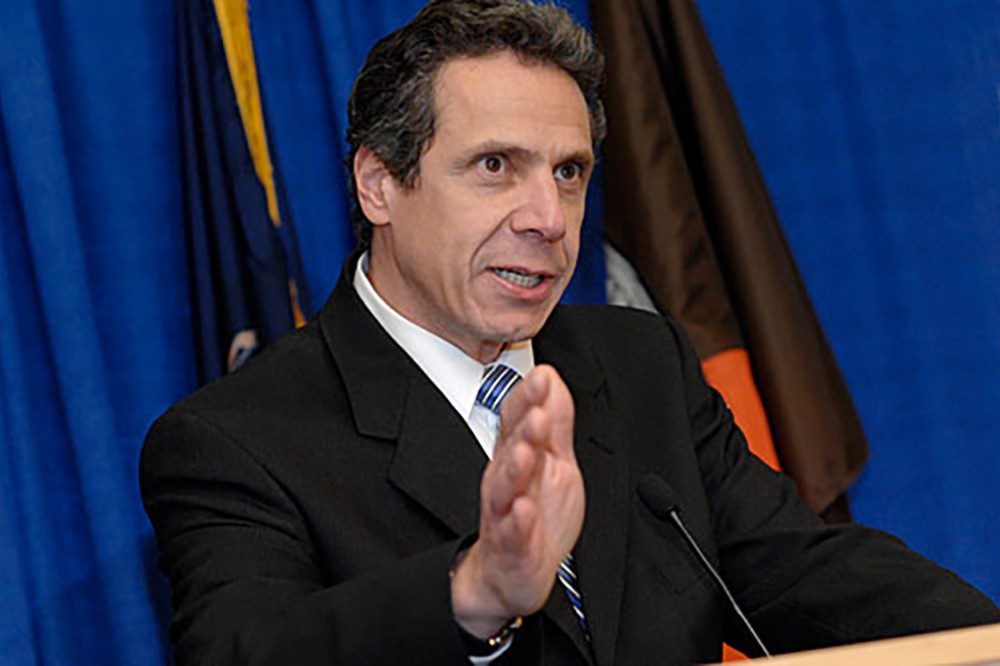 Andrew Cuomo, New York attorney general, joined RIT trustee B. Thomas Golisano Feb. 12 at RIT for an address on government consolidation. -