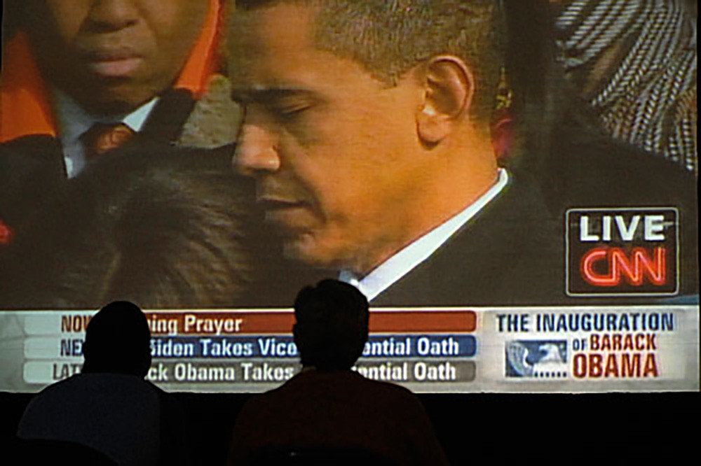 A gathering of RIT faculty, staff and students viewed the presidential inauguration of Barack Obama on a large screen in Clark Gym on Jan. 20.