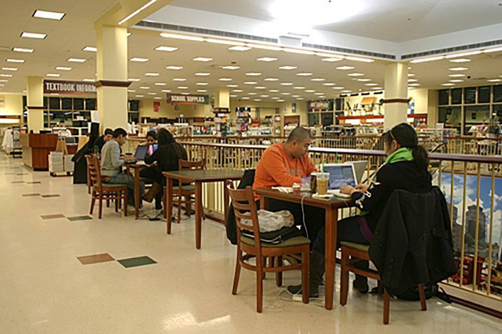 Students meet and study at Barnes & Noble @ RIT at Park Point. The 40,000-square-foot bookstore houses over 60,000 titles, a Starbucks Cafe and gift and clothing departments.