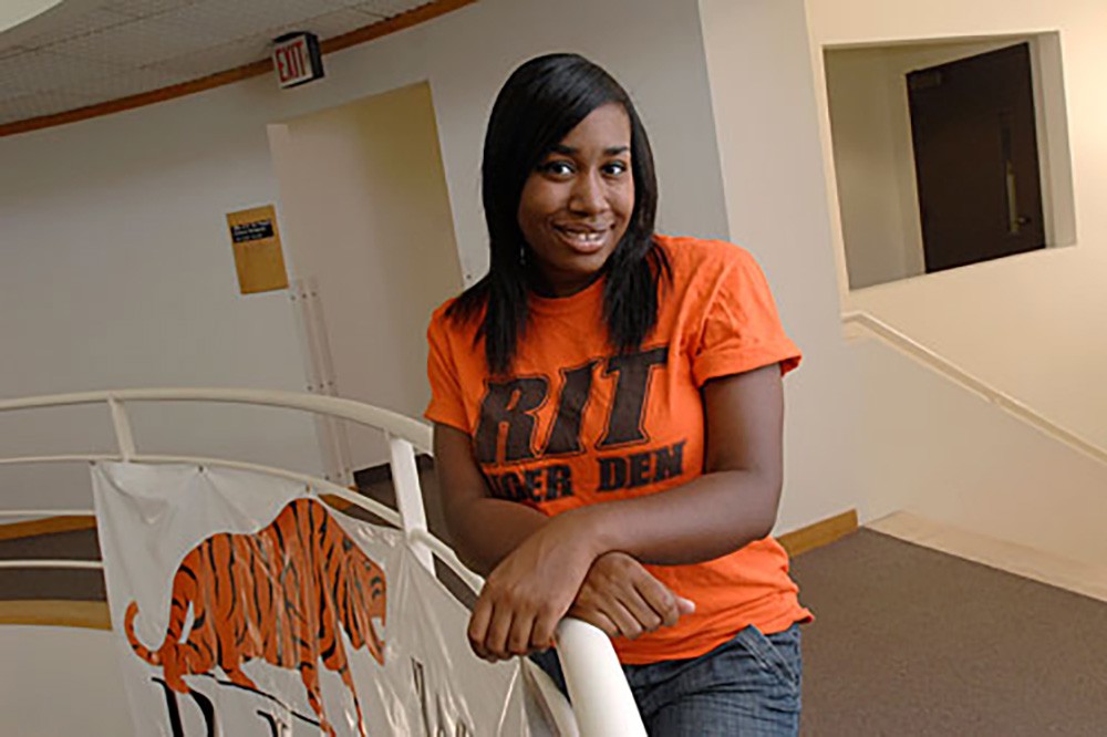In her role as a student ambassador for the Division of Enrollment Management and Career Services, Tiffani Williams is often among the first people that prospective students meet during their visit to campus. Tiffani is a graphic media student in the School of Print Media.