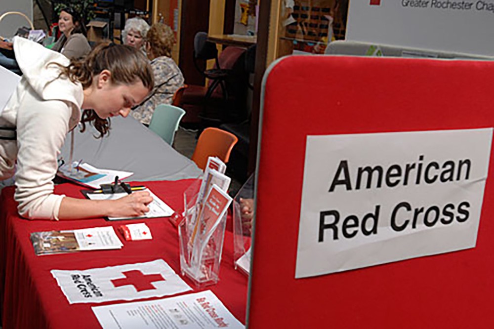 Representatives from nearly two dozen area non-profit agencies took part in the Fall Community Service Fair, sponsored by the RIT Leadership Institute & Community Service Center. Students, faculty and staff were invited to learn about services provided by the various organizations, including volunteer opportunities. Here, Jennifer Milillo, a second-year student in the College of Science, fills out an application for the American Red Cross.