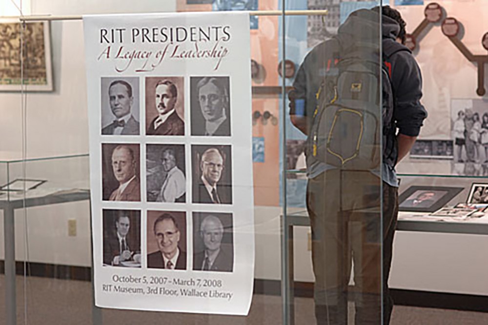 These images and memorabilia, currently on display in a new exhibit at the RIT Museum in Wallace Library, reflect RITâs leadership of its nine presidents. The exhibit, which runs until March 2008, is in honor of the inauguration of Bill Destler as RITâs ninth president. -