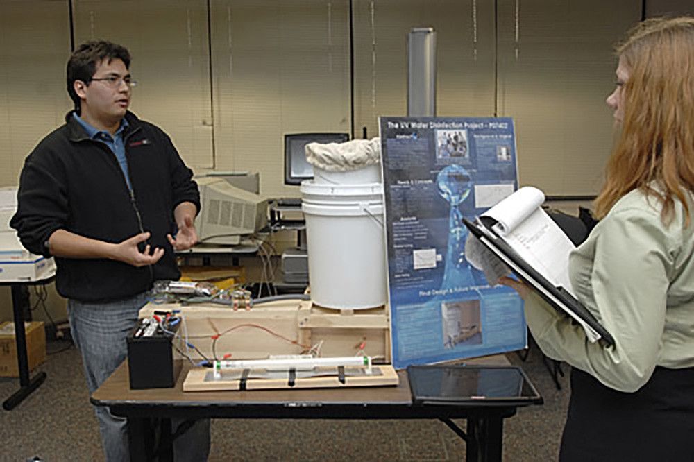 Industrial engineering students demonstrated their senior projects to Candi Cross, managing editor of Industrial Engineering Magazine, on Nov. 29. Cross was on campus to gather information for a feature article on sustainability in higher education. -