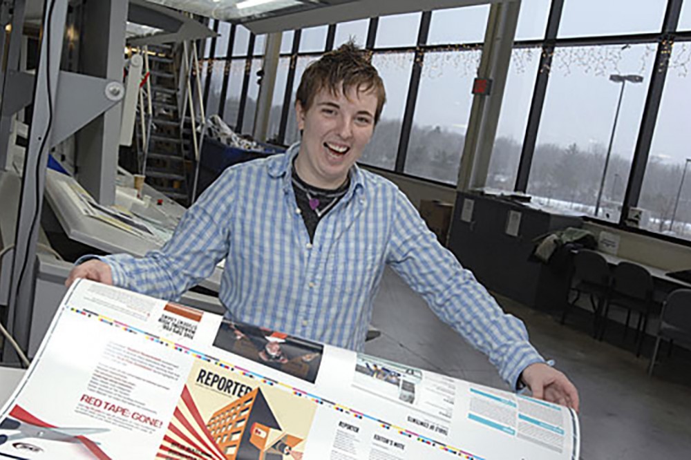 Jen Loomis, a fourth-year software engineering student in the Golisano College of Computing and Information Sciences, is the editor in chief of Reporter, RITâs student-published weekly newsmagazine. Loomis is also active in the Honors Program and played for several years in the RIT Jazz Ensemble. -