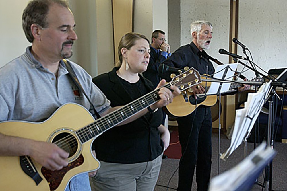 Mark Indelicato (guitar), Warren Koontz (vocals/guitar/keyboards), Abby Berner (vocals) and Paul Harris (vocals and harmonica) performed during a celebration Oct. 4 marking the 35th anniversary of the College of Applied Science and Technology. -