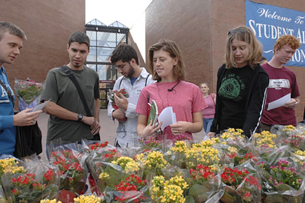 RIT Facilities Management Services treated students with flowering plants for their dorm rooms on Oct. 10. They handed out kalanchoe plants, along with care instructions, indicating they would survive life in the dorms. -