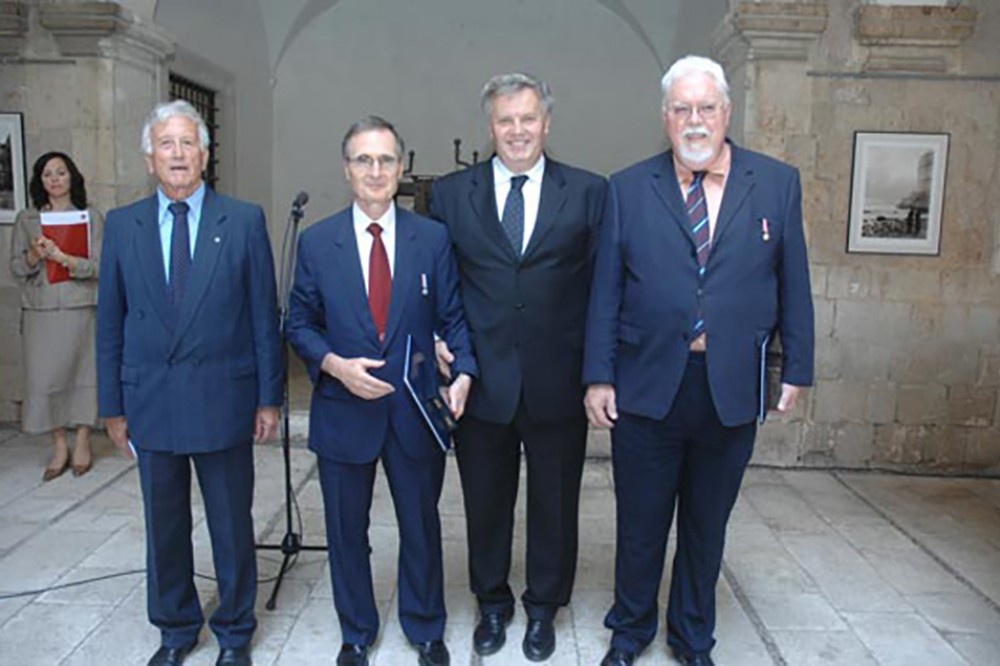To commemorate the opening a decade ago of RITâs American College of Management and Technology in Dubrovnik, Croatia, the office of the president of the Republic of Croatia awarded honorary medals to RIT President Albert Simone (second from left) and RIT Provost Stanley McKenzie (far right). Izet Aganovic (second from right), the special envoy for science and education to the president of Croatia, âpinnedâ Simone and McKenzie during ACMTâs June 3 commencement celebration, which was aired by Croatian National Television; Professor Ivo Srsen read the proclamation. -