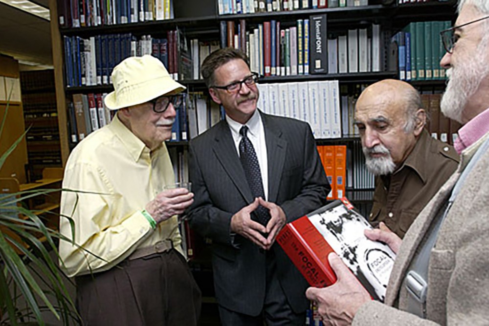 Michael Peres, center, is the editor of the fourth edition of Focal Encyclopedia of Photography. A reception on May 7 included various faculty and former photo faculty including Dick Zakia and Les Strobel (co-editors of the book’s third edition).