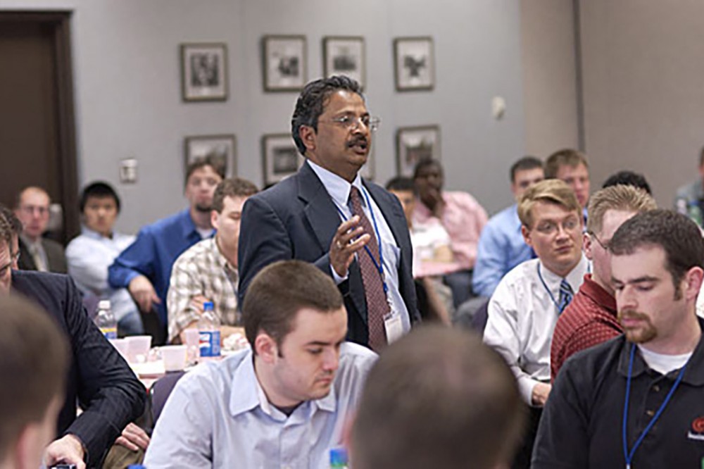 RIT’s microelectronic engineering department, in the Kate Gleason College of Engineering, hosted its 25th annual conference May 14-16. T. K. Hatwar of Eastman Kodak Co. comments at one of the panel discussions, Workforce Needs of the Semiconductor Industry. -