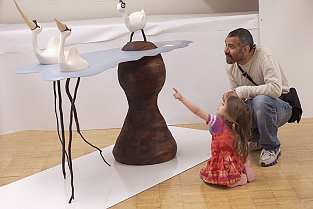 A table adorned with ducks caught the attention of two viewers during the annual School for American Crafts Walkthrough on May 21. The event is a tradition based on \"walking through\" the school’s metals, wood, ceramics and glass studios to view work created throughout the school year by RIT’s talented student artists. -