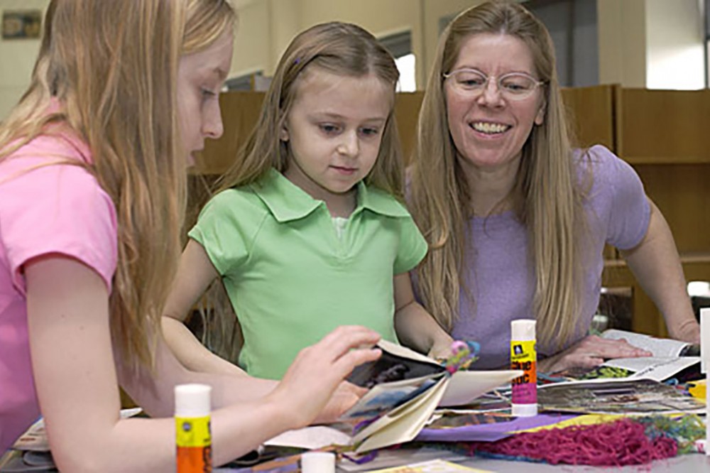 Take Our Daughters & Sons To Work Day, coordinated by the RIT Womenâs Center on April 26, offers Bookmaking & More at Wallace Library. Here, the Smith family works on creating books to take home.