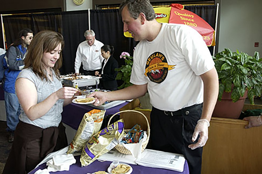 Ron von Perlstein offers a sample of Geulah’s spicy tomato spread at the annual Taste of RIT on April 26. Proceeds from the food and beverage tasting benefit United Way. -