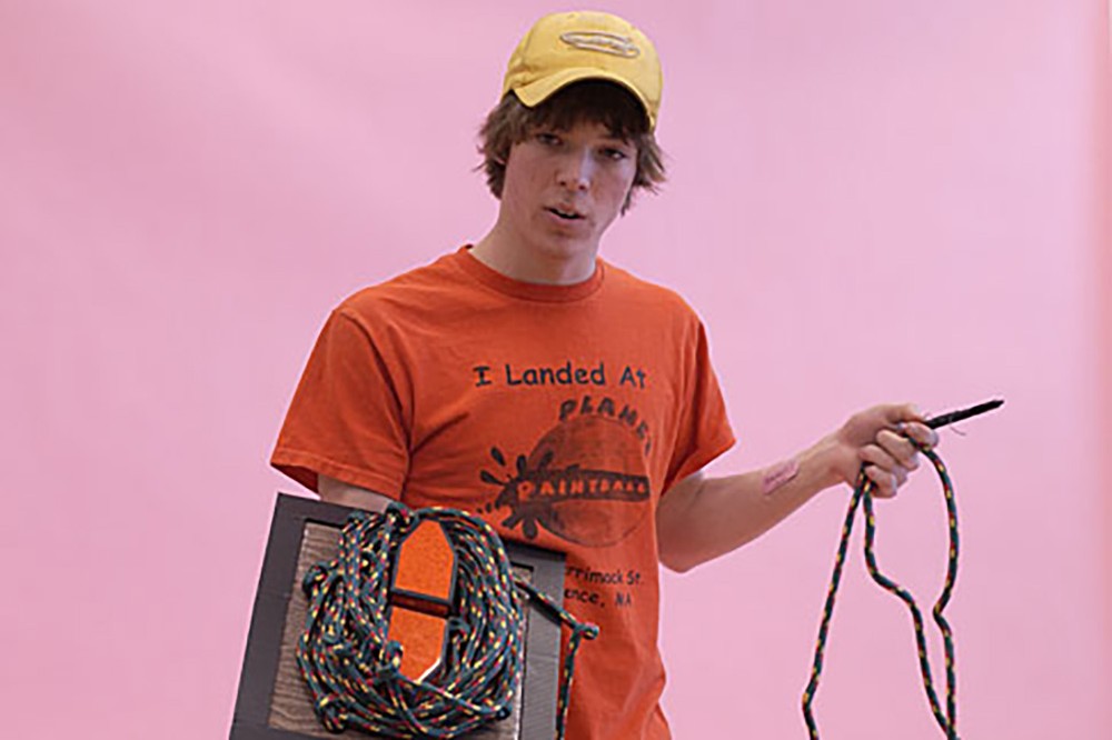 More than 150 first-year art and design students from RITâs College of Imaging Arts and Sciences designed and constructed a wearable or portable design addressing a personal fearâranging from a fear of germs, public speaking, or getting burned by hot coffee to a life without love. The 3-D projects are constructed of various materials including fabric, plastic and metal. Here, Shaun O’Brien explains The Houdini, a device used to escape a fire in a dorm room. -