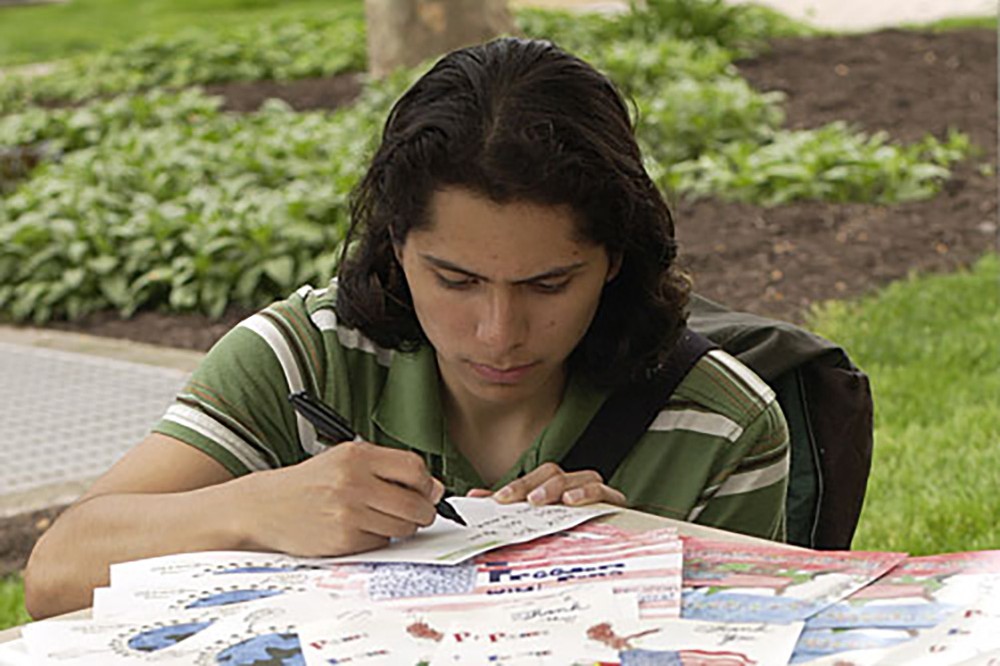 To show appreciation to the hundreds of thousands of troops stationed overseas, Xerox Corp. has developed a nationwide program called Let’s Say Thanks. Xerox, along with students in the School of Print Media, printed out 2,000 postcards at the HUB. RIT ROTC students set up two tables at the Infinity Quad and along the quarter mile on May 10 for people in the RIT community to write out personal messages on the postcards to U.S. servicemen and servicewomen. -