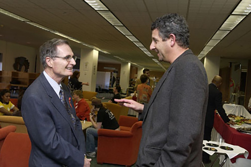 President Simone, left, and David Neumann, professor in the Department of Communication and Chair of Institute Effective Teaching Committee, attend the IETC Reunion on April 20. The reception brings together all faculty, students, and staff who have participated in IETC sponsored events, showcasing just how many people are dedicated to teaching and learning at RIT. -