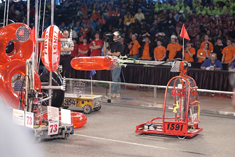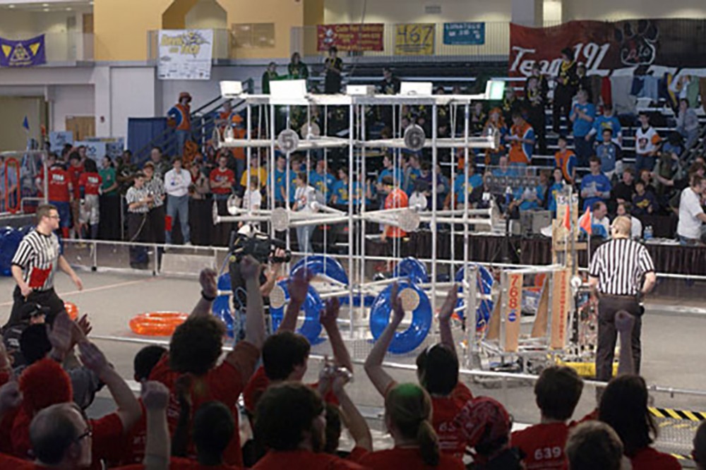 Some of the hundreds of spectators who enjoyed the third annual Finger Lakes Regional FIRST Robotics Competition, March 9 and 10, in RIT’s Gordon Field House and Activities Center. -
