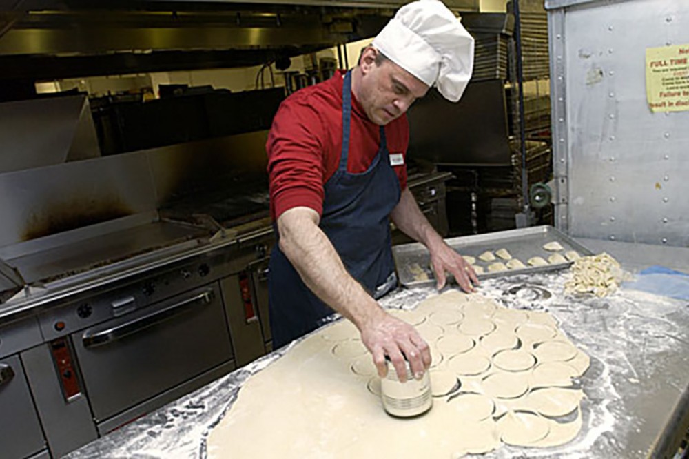 Vince Incardona, ITS manager for desktop support, prepares an Italian dessert, casatidi, for the annual Finance and Administration Diversity Luncheon March 7. -