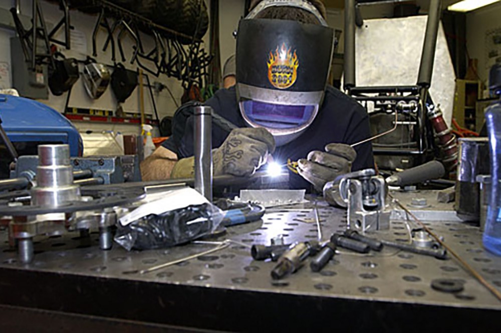 A member of RIT’s baja team welds a part for the all-terrain vehicle. RIT’s team is one of over 140 teams from colleges around the world to compete here June 7-10. -