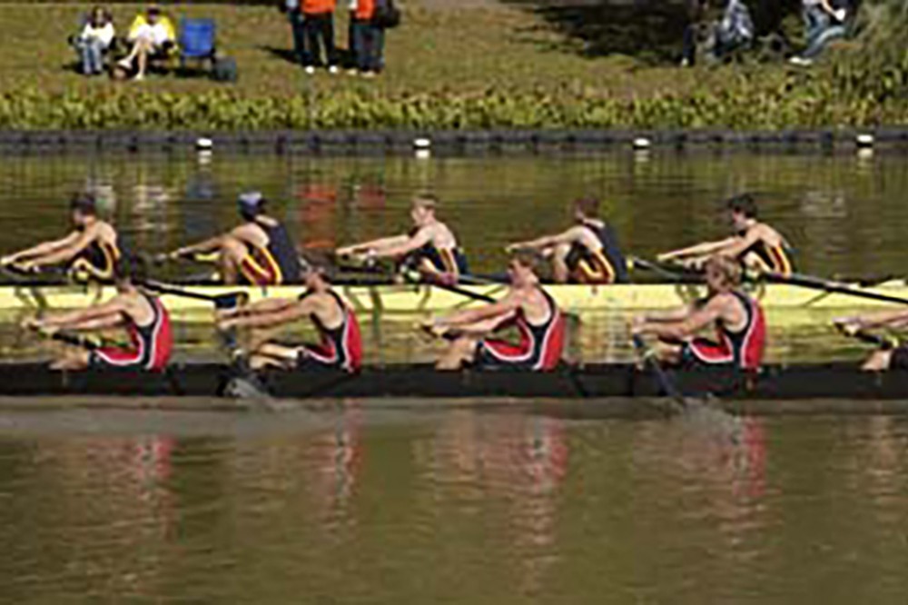 Spectators along the banks of the Genesee River take in competition from the annual Head of the Genesee Invitational Regatta on Oct. 8. More than 35 collegiate menâs and womenâs teams from New York state, the East Coast and Canada took part. Now in its 18th year, the regatta is co-hosted by RIT, the University of Rochester, Rochester Business Alliance, and Genesee Waterways Center. -