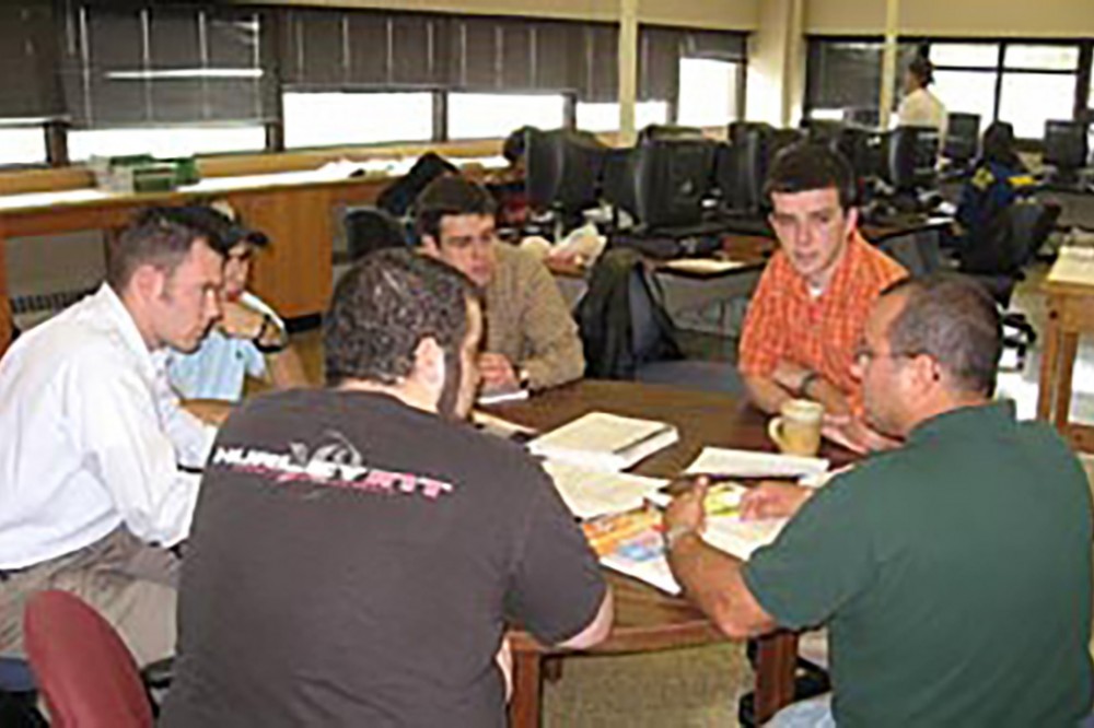 E. Philip Saunders College of Business students prepared for their first meeting with a marketing class at the School of Business, Finance and Entrepreneurship at Edison in September. Representing RIT chapters of the American Marketing Association and Students in Free Enterprise, students visit the high school weekly to mentor Edison students in creating a school store. Joining Edison business teacher Andy Mendola are, clockwise, Robert McCook, Kyle Shearer, Chafic Chahine, Nicolas Germain and Daniel Orth. -