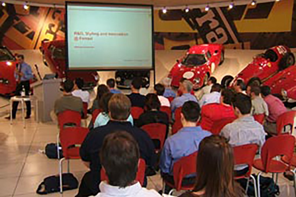 Thirty students in RITâs product development executive masterâs program completed a 10-day, four-credit design management course in Milano, Italy â a city recognized as the world capital for design. Students attended lectures and workshops and visited five companies known for product design innovation, including automaker Ferrari. Shown above, Paolo Bocchia, the firmâs vice president of human resources, addresses managing innovation resources. Stefan Carmassi, engineering director, discussed technology developments, design strategy and design management, manufacturing, the customer interface, and teamwork needed among engineers and designers to meet performance and styling requirements for Ferrari automobiles. Students also took a 90-minute tour of the Ferrari plant. -
