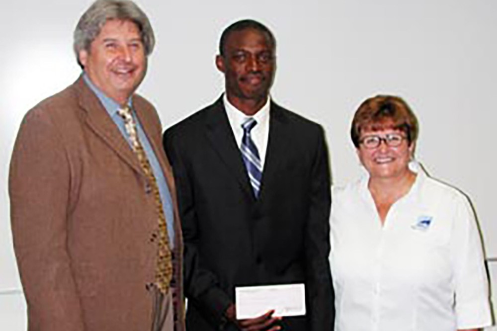 Ezenwa âNelsonâ Oparah, an electrical engineering technology student in the College of Applied Science and Technology and a marine reservist, was rewarded for both his military service and academic success during a June 9 ceremony. Anne Barton of the National Student Loan Program and Jeffrey Kaye of the New York state Division of Veteranâs Affairs presented Oparah with a $500 scholarship. -