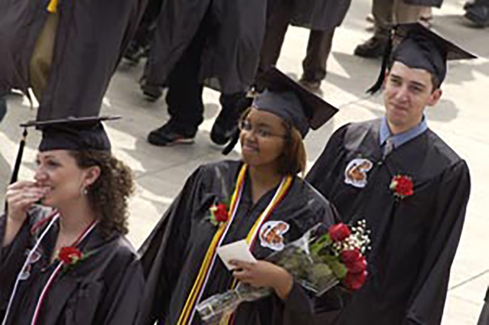 RIT graduating students nervously line up to enter their commencement ceremony on May 27 at the RIT campus. More than 3,500 undergraduate and graduate students received degrees over the commencement weekend. -