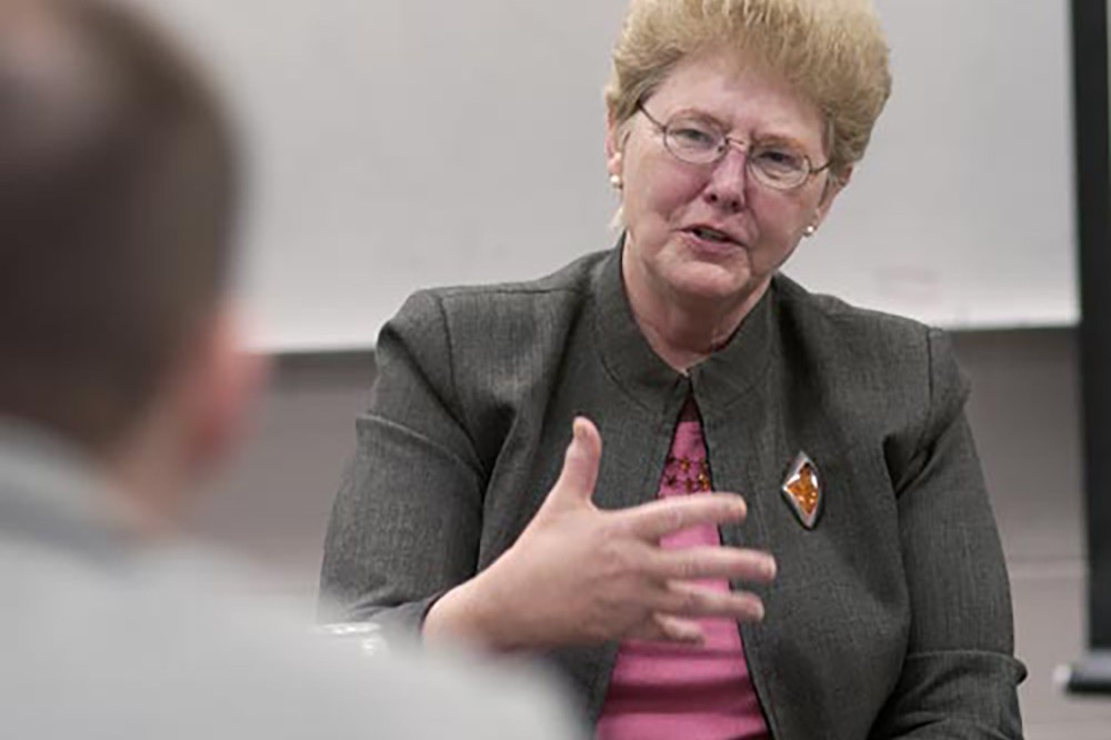 RIT alumna and scholar N. Katherine Hayles, professor of literature and media art at University of California, visited RIT May 4 to meet with faculty and to present her talk, "Literature as a Computational Practice." She is considered a central figure in establishing connections among literature, media and science, and is the author of several books. Hayles earned her B.S. in chemistry from RIT. She holds advanced degrees in chemistry from California Institute of Technology and literature from Michigan State University. -
