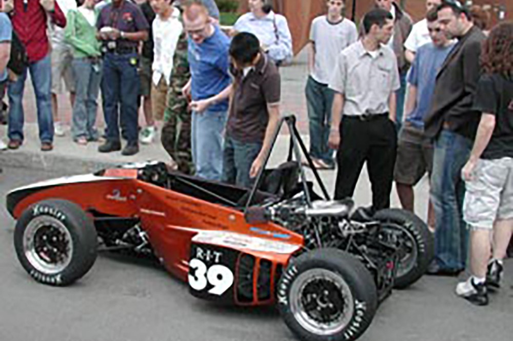 RITâs Formula racecar was taken for a test drive around Administration Circle on May 5 before stopping near The Sentinel and allowing dozens of spectators their first up-close look at the newly built racer. RIT competes in the annual Formula SAE May 18-20 at the Ford Proving Grounds in Romeo, Mich. -