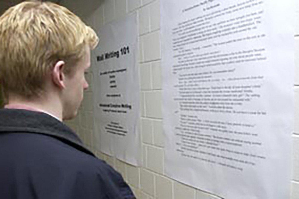 âWall Writing 101â showcased student work from professor Anne Coonâs advanced creative writing class. The exhibit lined the walls of the main corridor in the College of Liberal Arts Building with three-by-four-foot posters featuring one page each from studentsâ winter quarter-long projects.