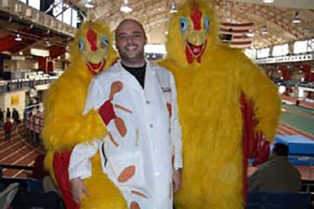 Will these chickens run in the first episode of ABC's American Inventor tonight? Aaron Foss, an RIT alumnus, was one of 4,000 geeky inventors who auditioned for a new primetime reality show that follows the format of American Idolâcomplete with the cynical Simon Cowell as executive producer. Foss designed The WingDipper, a plastic cup holder "to dip both chicken wings and legs into bleu cheese without the mess." Foss received his undergraduate degree in information technology ('00) and his MBA ('01) from RIT. Foss reached the show's semi-finals, but it's not known whether he'll be featured as part of tonight's casting call highlights. -