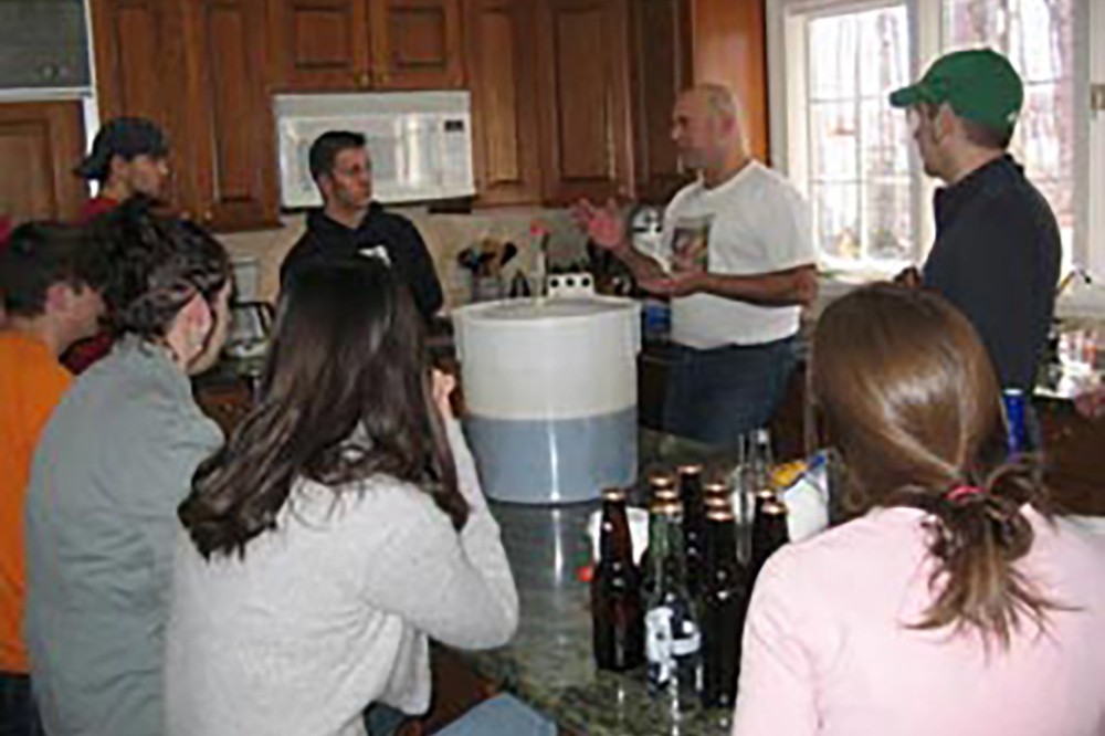 Fritz Yambrach, associate professor of packaging science, recently opened up the kitchen of his Pittsford home to students in his Food Preservation and Packaging course. Thirty students received hands-on instruction in fermentation and bottling of beer. The course, offered twice yearly, examines various food products, processing and preservation methods, impact on quality and nutritional value, packaging methods and distribution practices. -