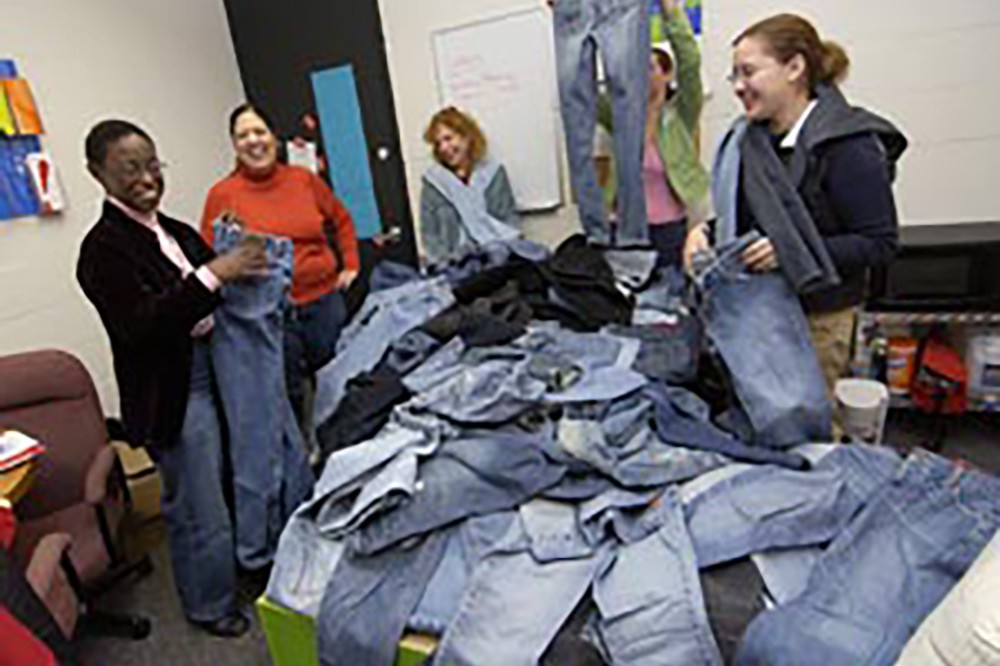 The Great Jeans Giveaway at RIT gathered 215 pairs of jeans that no longer fit someone to celebrate National Eating Disorder Week by the RIT Women's Center. All donations will be given to the YMCA to help women in need. The week focused on self-image to free women and men from destructive dieting. -