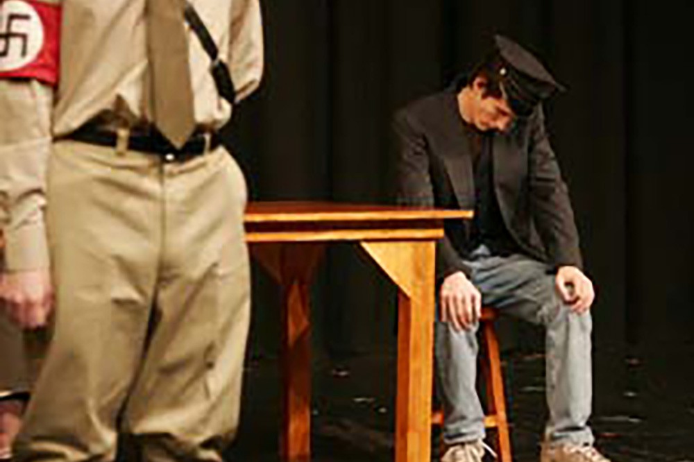 The RIT Players and the Department of Fine Arts in RIT's College of Liberal Arts performed The Exception and the Rule: A Brecht Show last month, celebrating the influential 20th century playwright Bertolt Brecht. The two-part production began with a documentary-style presentation of selections from Brechtâs drama and poetry from the period, 1928-38, including three scenes from Fear and Misery in the Third Reich. Shown here are Nate Jentsch as a Nazi Storm Trooper and Andrew Gibson, playing the character of a chauffer. -