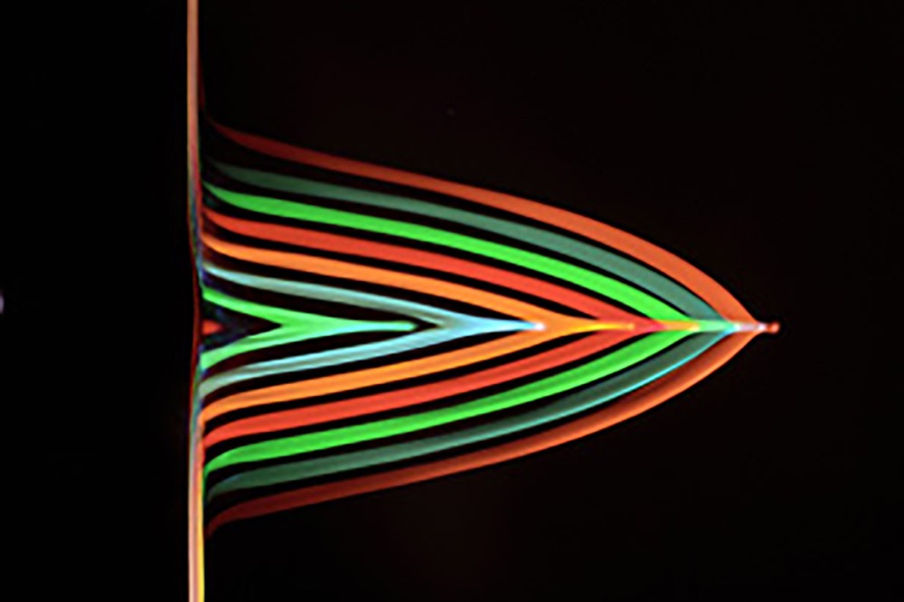 Loren Winters from the North Carolina School of Science and Mathematics captures the decelerating force of a projectile traveling into a hanging elastic strip. The scene is among nearly 60 photos included in Images from Science, an exhibition of scientific photography created by Professors Michael Peres and Andrew Davidhazy in the School of Photographic Arts and Sciences. The exhibit is back in Rochester after a three-year odyssey throughout the United States and overseas at One Bausch & Lomb Place through April.