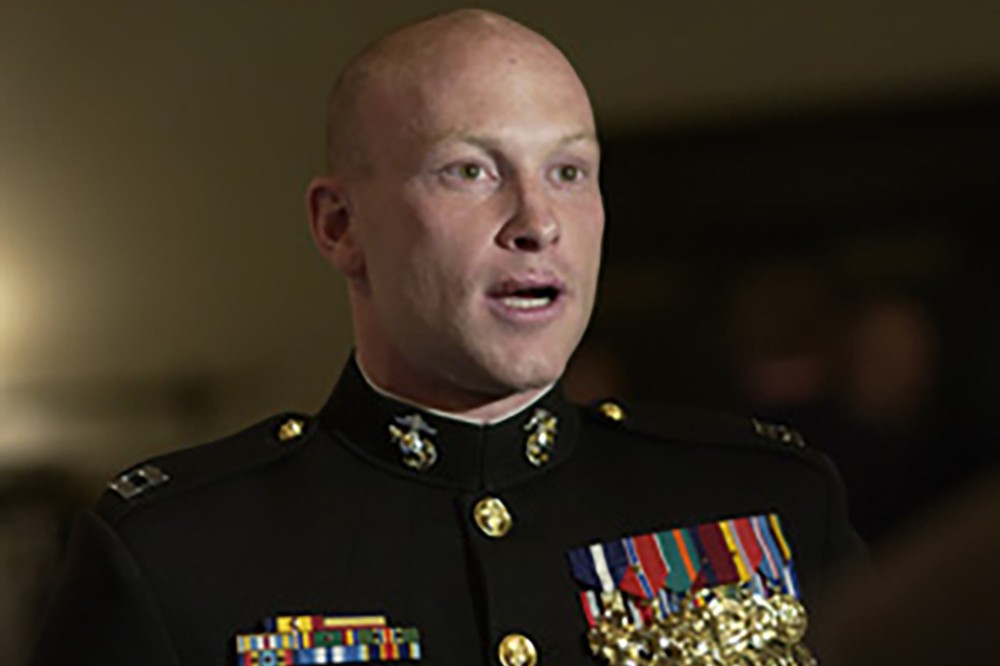 Brian R. Chontosh, â00, a graduate of RITâs mechanical engineering technology program, is the 2005 RIT Outstanding Alumnus and was recently on campus to receive the award. Chontosh, of Churchville, N.Y., attended RIT while serving in the U.S. Marine Corps and received a Navy Cross, the nationâs second-highest honor for valor, after a 2003 enemy ambush in Iraq. Chontosh, a captain, is currently assigned to the Marine Infantry Institute in Quantico, Va. -